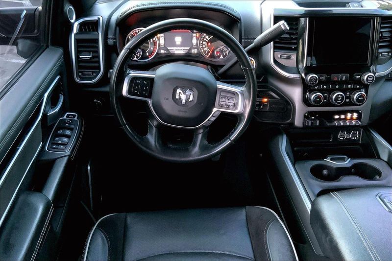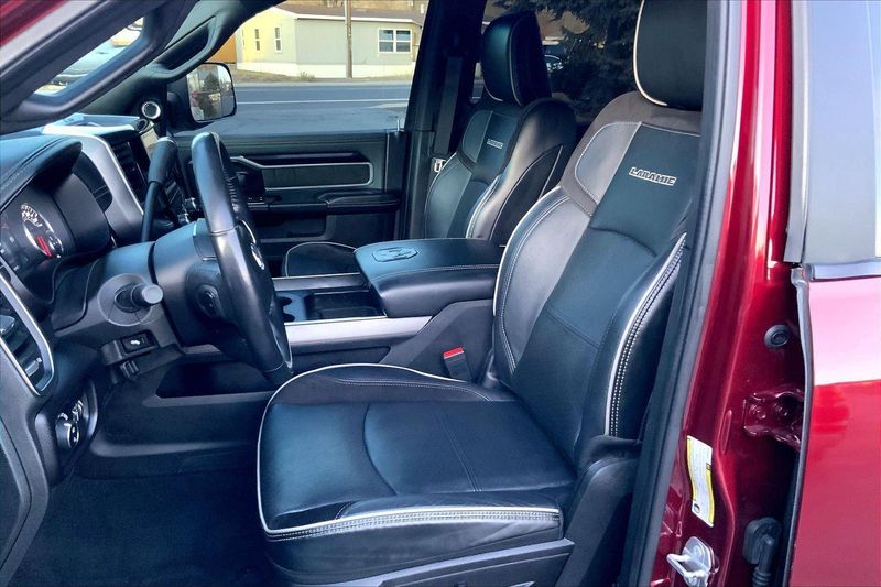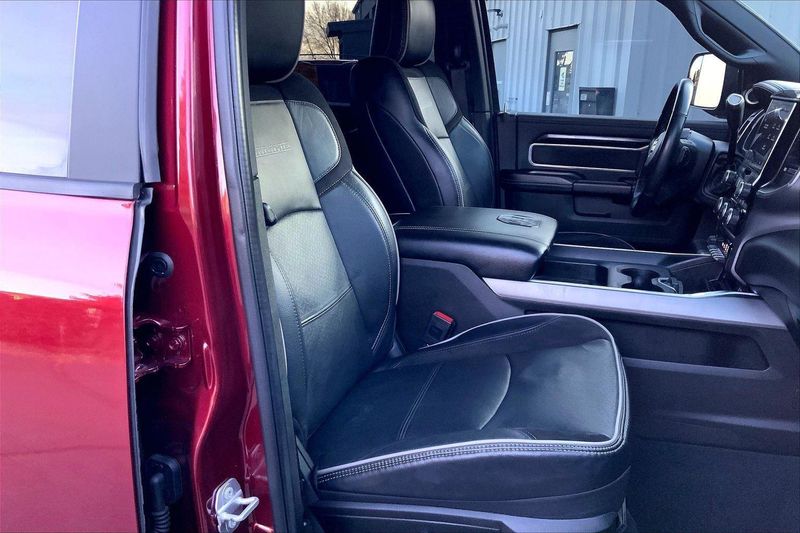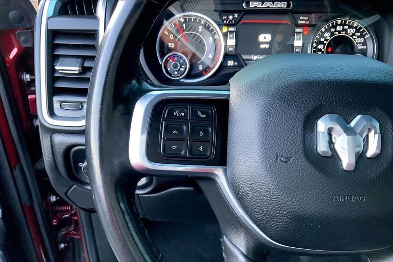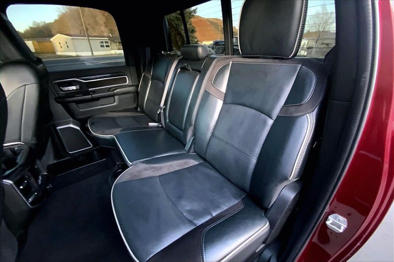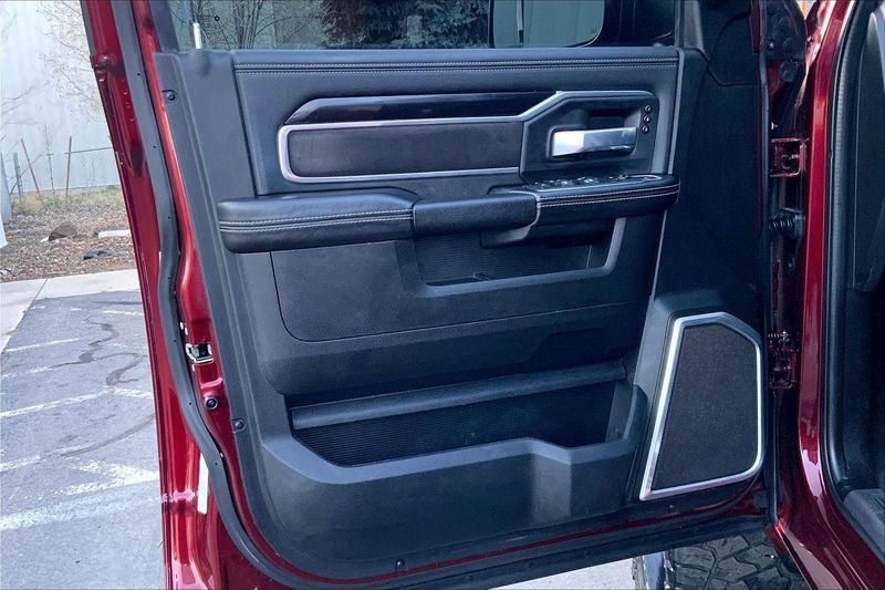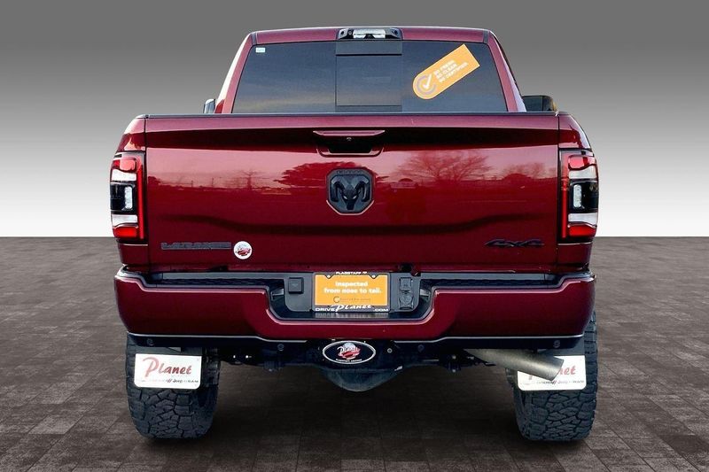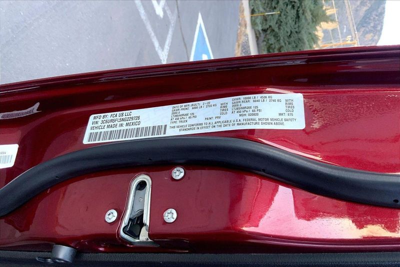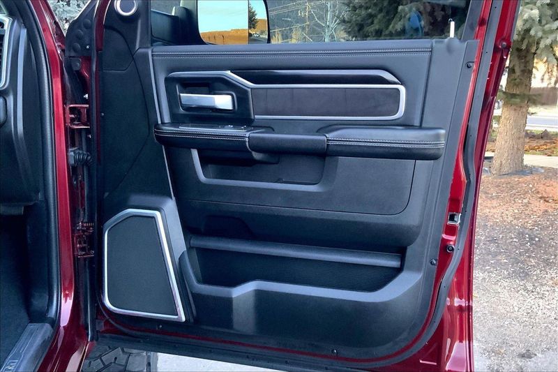ENGINE: 6.7L I6 CUMMINS TURBO DIESEL, TRANSMISSION: 6-SPEED AUTOMATIC (68RFE), QUICK ORDER PACKAGE 2HH LARAMIE, 3.73 AXLE RATIO, WHEELS: 20" X 8.0" BLACK PAINTED ALUMINUM, TIRES: LT285/60R20E OWL ON/OFF ROAD, MONOTONE PAINT, DELMONICO RED PEARLCOAT, BLACK, LEATHER TRIMMED BUCKET SEATS, TOWING TECHNOLOGY GROUP B, LARAMIE LEVEL B EQUIPMENT GROUP, TOW-MODE DIGITAL REARVIEW MIRROR PACKAGE, NIGHT EDITION, ANTI-SPIN DIFFERENTIAL REAR AXLE, 220 AMP ALTERNATOR, 5TH WHEEL/GOOSENECK TOWING PREP GROUP, TOW-MODE CAMERA (WIRED), TOW HOOKS, CTR STOP LAMP W/CARGO VIEW CAMERA, RADIO: UCONNECT 5 NAV W/8.4" DISPLAY, MANUFACTURER'S STATEMENT OF ORIGIN
