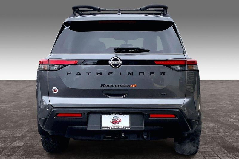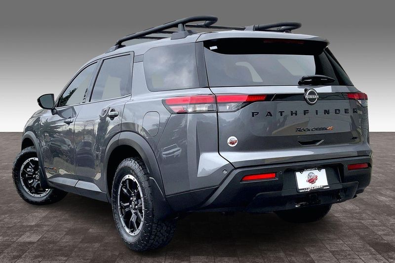 This Gun Metallic 2025 Nissan Pathfinder Rock Creek would be a welcomed addition to your family/ business.